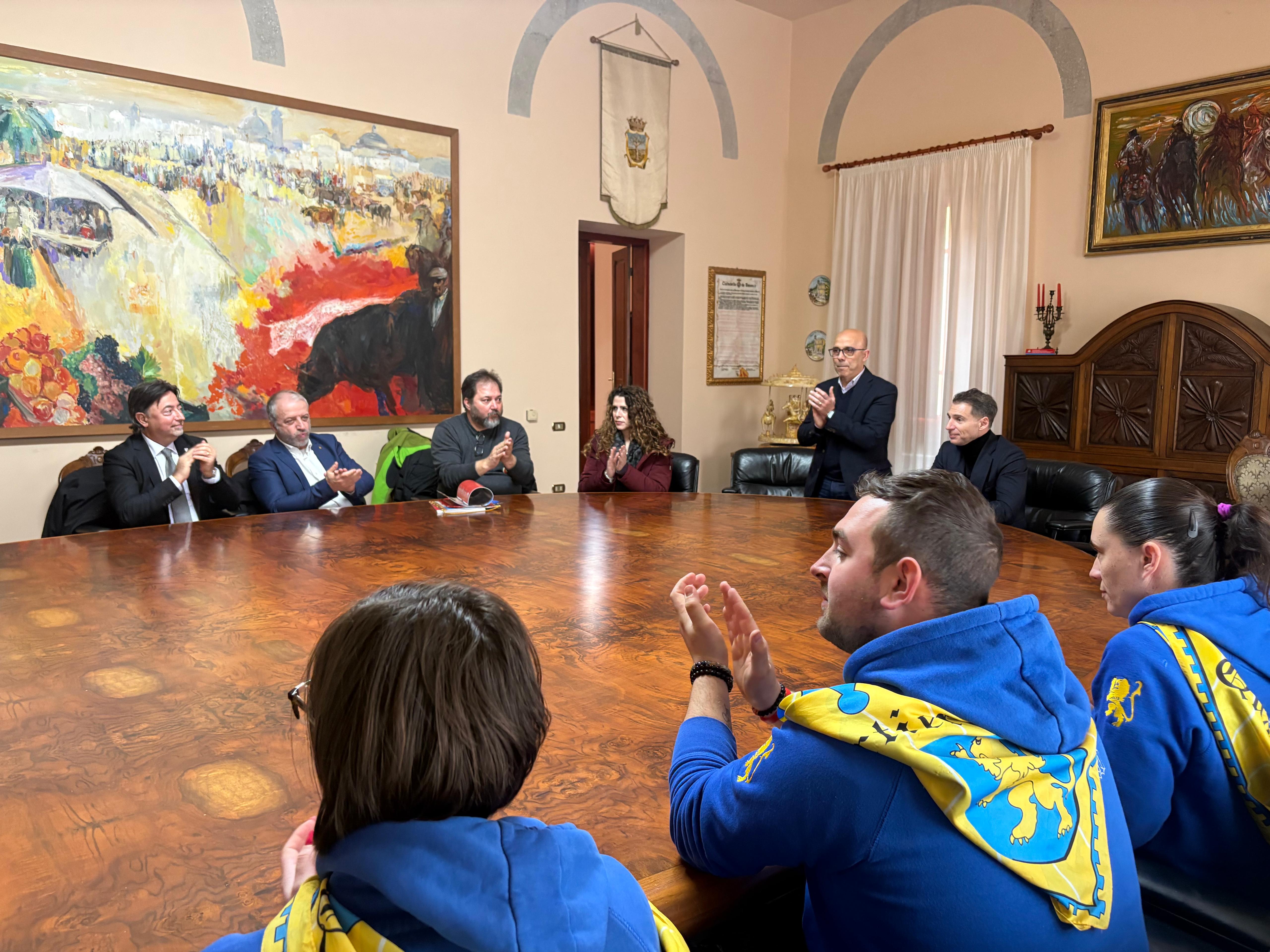 In occasione della Sartiglia 2026, Oristano si conferma crocevia di relazioni culturali e istituzionali nel segno delle grandi tradizioni equestri europee. Questa mattina, nella sede istituzionale di Palazzo Campus Colonna, il Sindaco di Oristano, Massimiliano Sanna, il Presidente della Fondazione Oristano, Carlo Cuccu, e l’Assessore alla Cultura, Simone Prevete, hanno accolto le delegazioni delle città italiane ed europee presenti in città per assistere alla giostra oristanese.