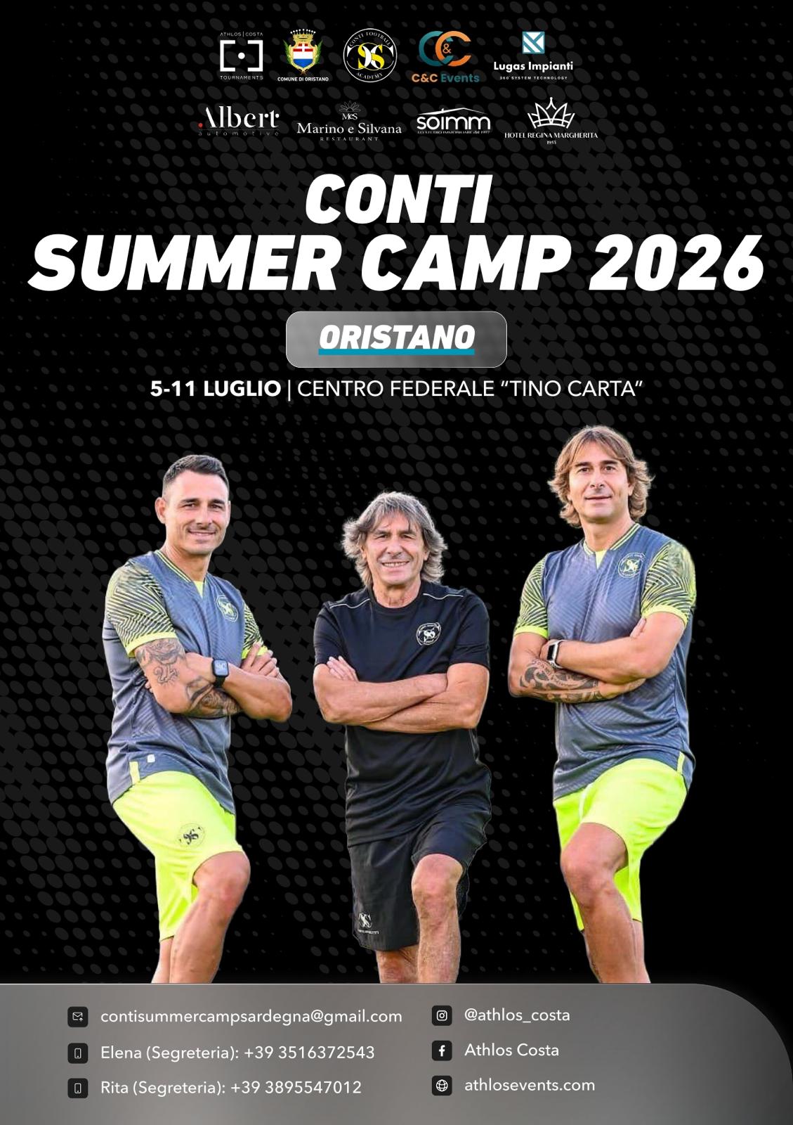 Nasce a Oristano un nuovo appuntamento destinato a diventare un punto di riferimento dell'estate sportiva 2026: il Conti Summer Camp, in programma dal 5 all'11 luglio presso il Centro Federale "Tino Carta", nella suggestiva cornice di "Sa Rodia".