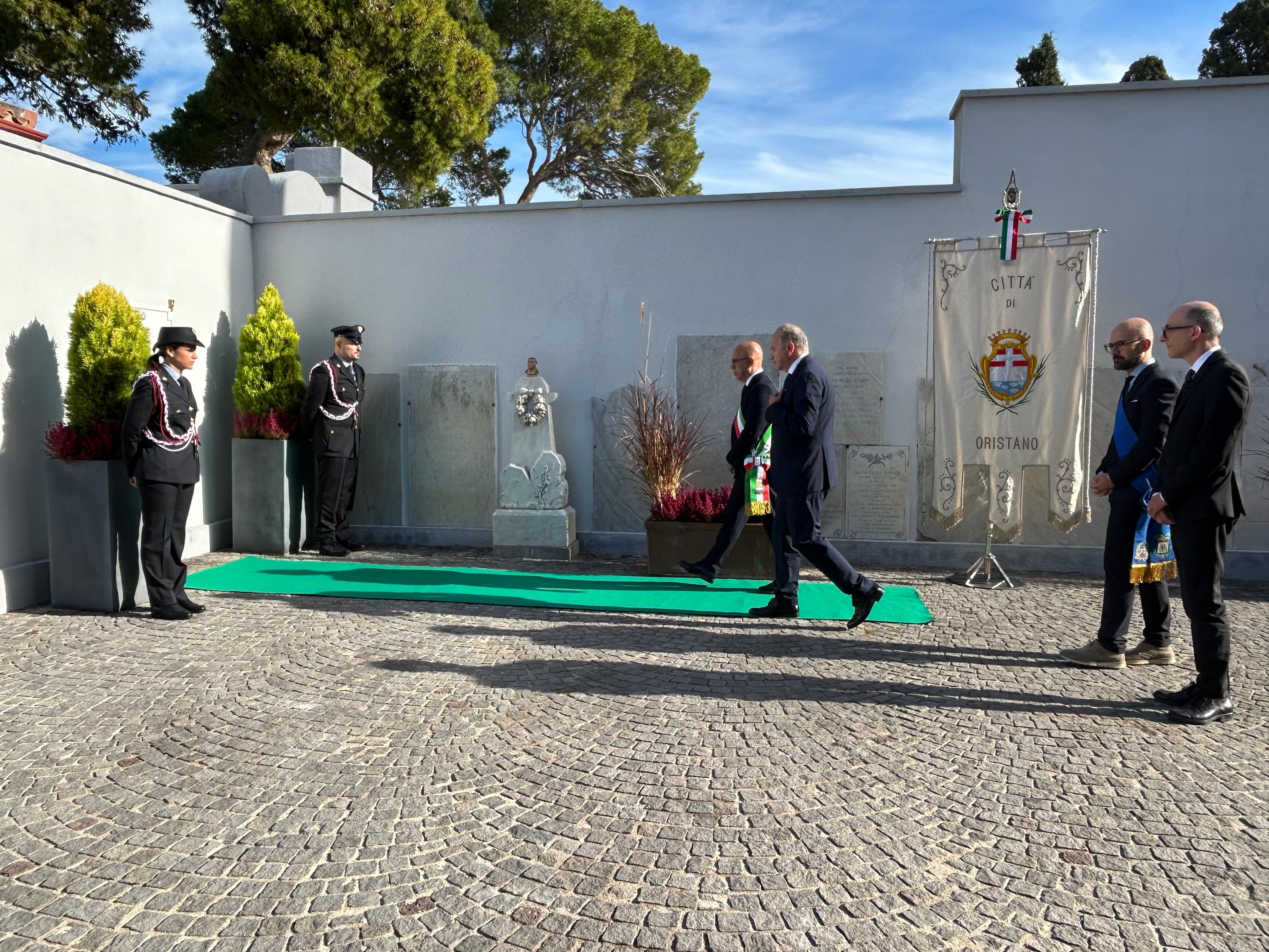 Con la deposizione di una corona floreale, le istituzioni cittadine hanno voluto rendere omaggio “alle donne e agli uomini che hanno amato Oristano e l’hanno servita con passione, lasciando con il loro esempio un segno profondo nella nostra storia” ha proseguito il Sindaco.