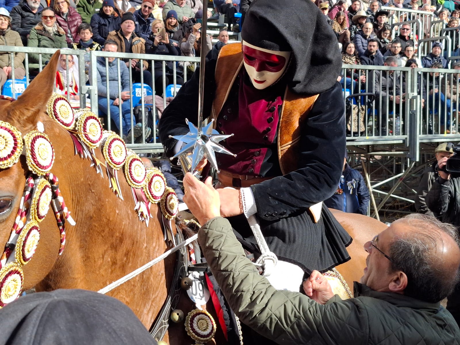 A impreziosire il pomeriggio restano le due stelle d’oro, simbolo di continuità e bravura assoluta. La prima stella d’oro della Sartiglia 2026 è andata a Giampaolo Mugheddu, capace di confermarsi dopo il centro di domenica e di infilzare oggi l’ottava stella della giornata. La seconda stella d’oro porta invece la firma di Michael Casula, premiato per la doppia impresa tra domenica e martedì, suggellata con la decima stella della giornata.