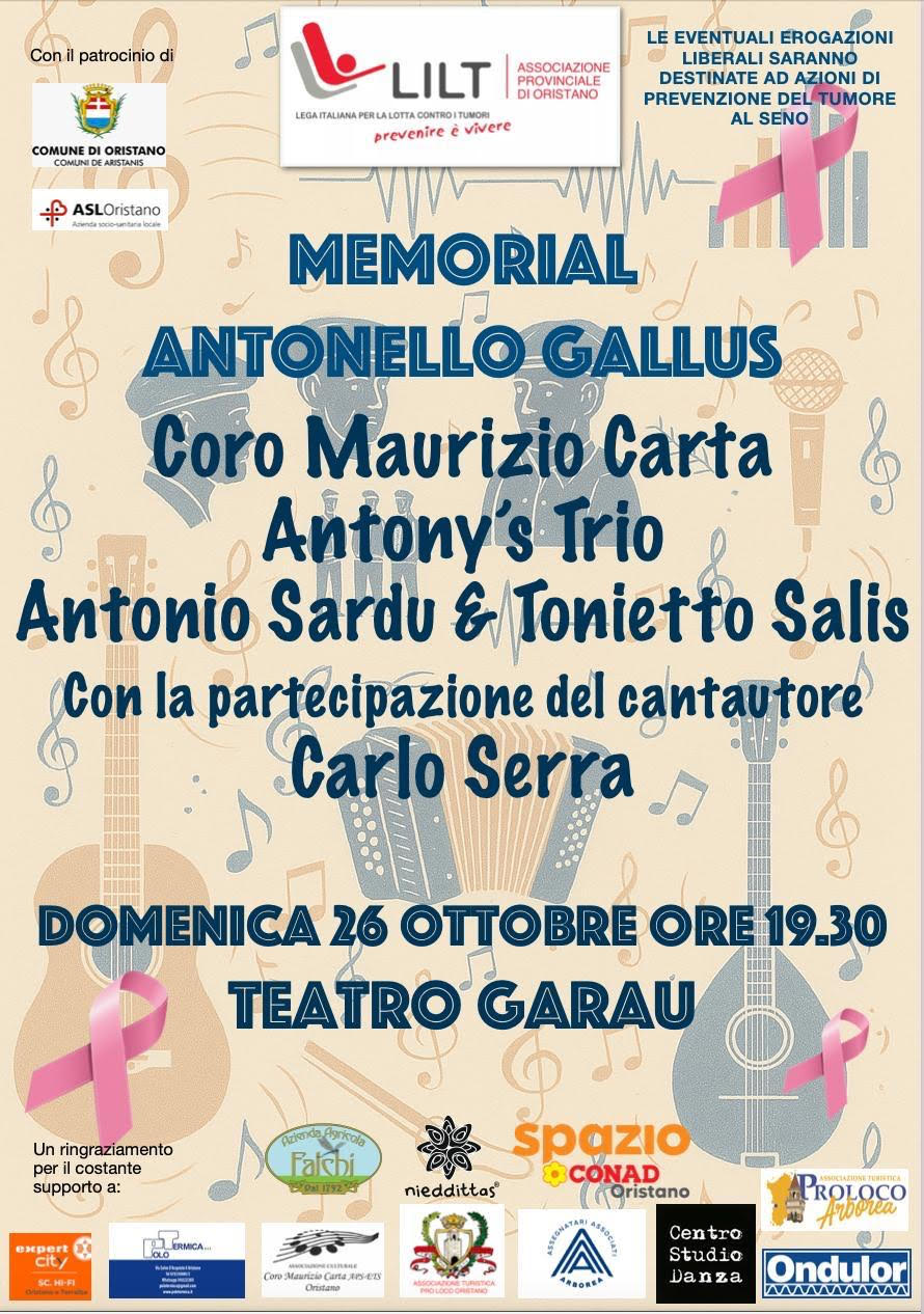 La LILT, domenica 26 ottobre alle 19.30 al Teatro Garau, organizza il Memorial Antonello Gallus.