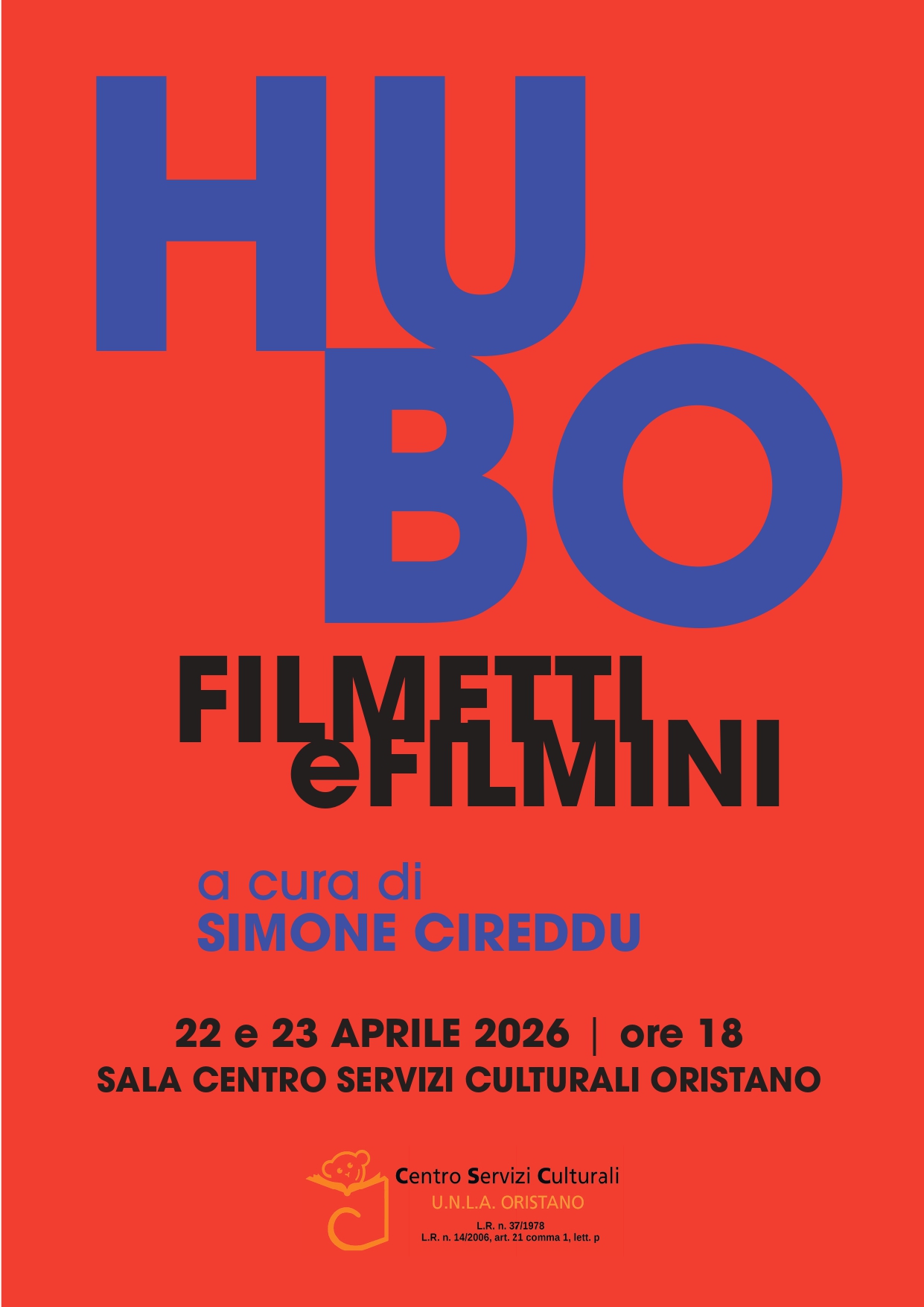 Mercoledì 22 e giovedì 23 aprile 2026, alle ore 18, al Centro Servizi Culturali UNLA, la rassegna “HU BO. Filmetti e filmini” a cura di Simone Cireddu.