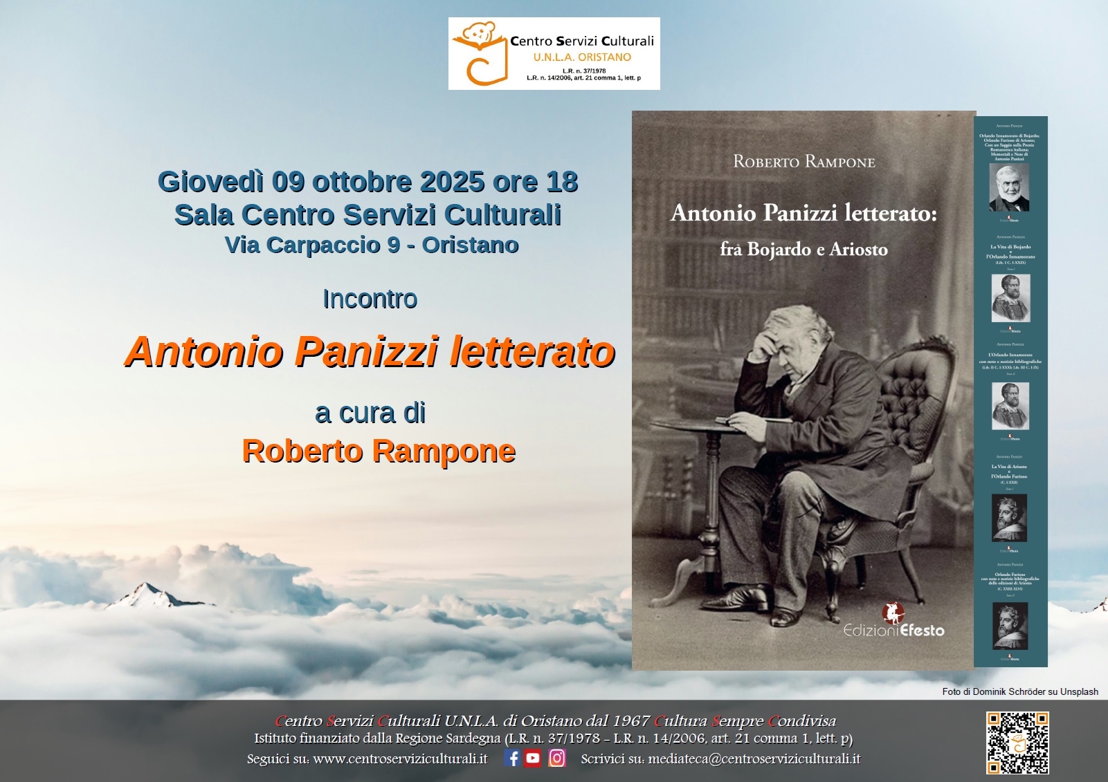 Giovedì 9 ottobre 2025, alle 18, al Centro Servizi Culturali UNLA, incontro con il letterato Antonio Panizzi a cura di Roberto Rampone.