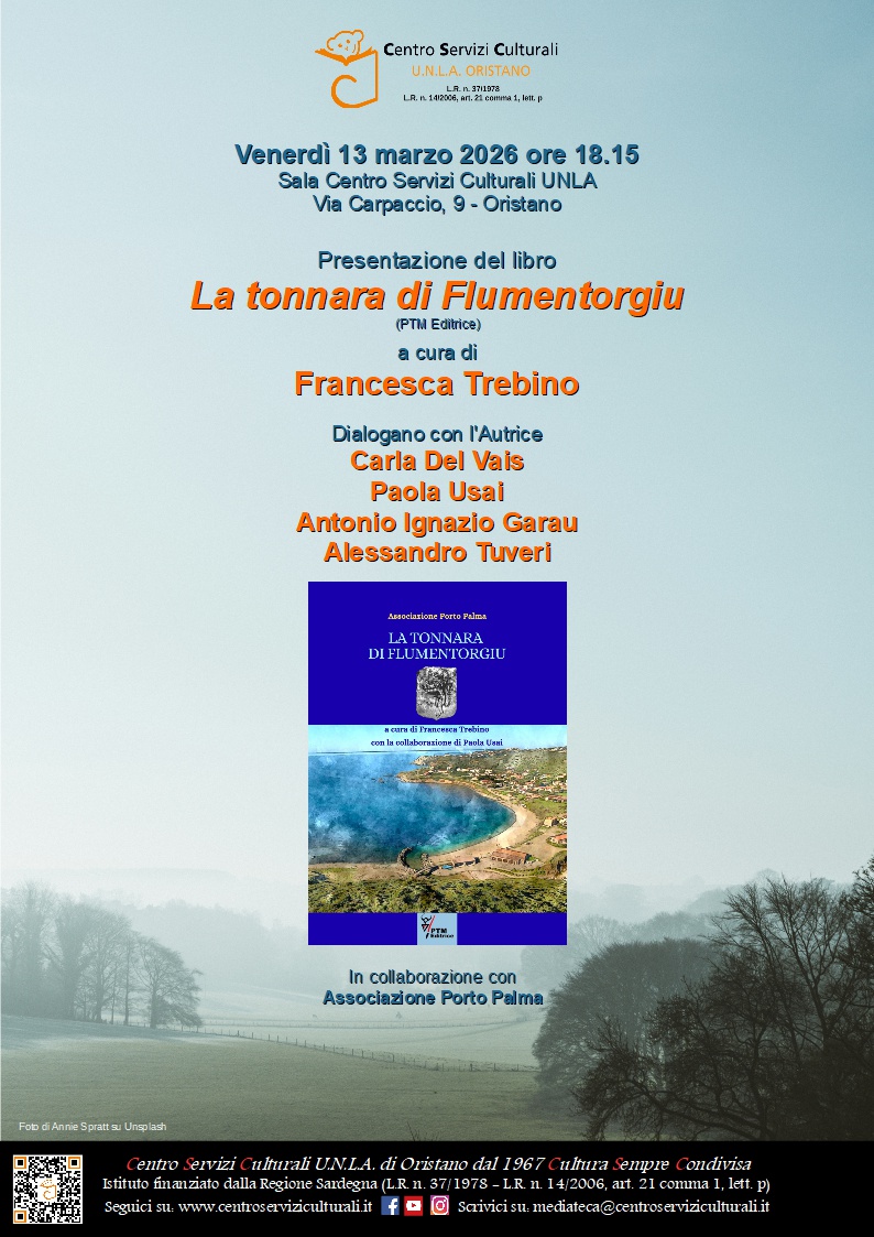 Venerdì 13 marzo 2026, alle 18.15, al Sala Centro Servizi Culturali, la presentazione del libro “La tonnara di Flumentorgiu” (PTM Editrice) a cura di Francesca Trebino.