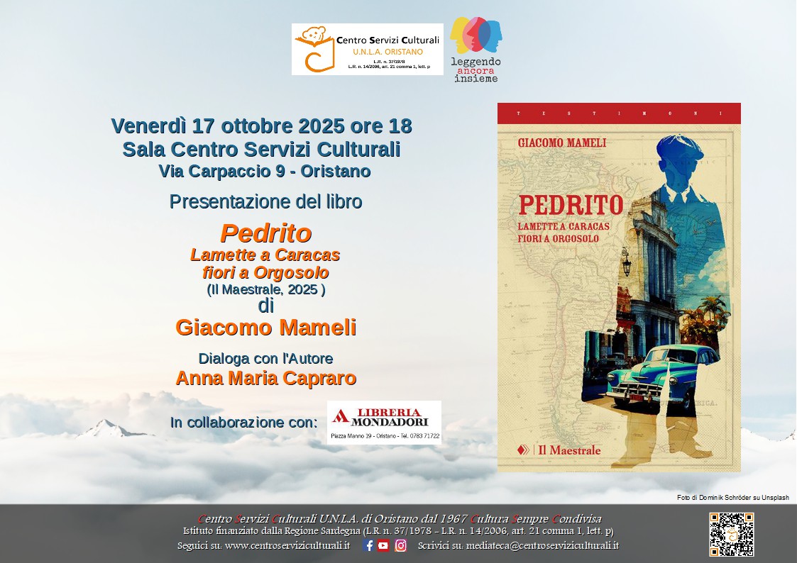 Il Centro Servizi Culturali UNLA e Leggendo Ancora Insieme, presentano il libro “Pedrito. Lamette a Caracas. Fiori a Orgosolo” (Il Maestrale, 2025) di Giacomo Mameli.