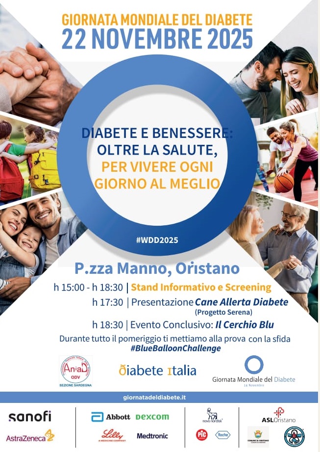 In occasione della Giornata Mondiale del Diabete, che si celebrerà sabato 22 novembre, Aniad (Associazione Nazionale Atleti Diabetici) Sardegna, in collaborazione con Asl 5 e Comune di Oristano, organizzerà un evento finalizzato a promuovere la prevenzione e la consapevolezza sul diabete.