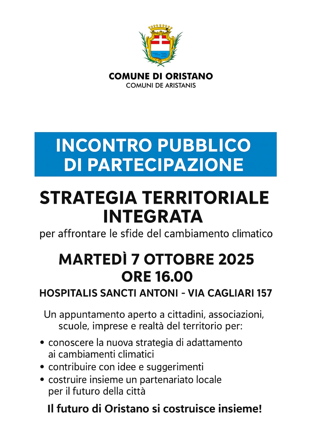 L’Amministrazione Comunale di Oristano organizza un incontro pubblico per la presentazione della strategia territoriale integrata.